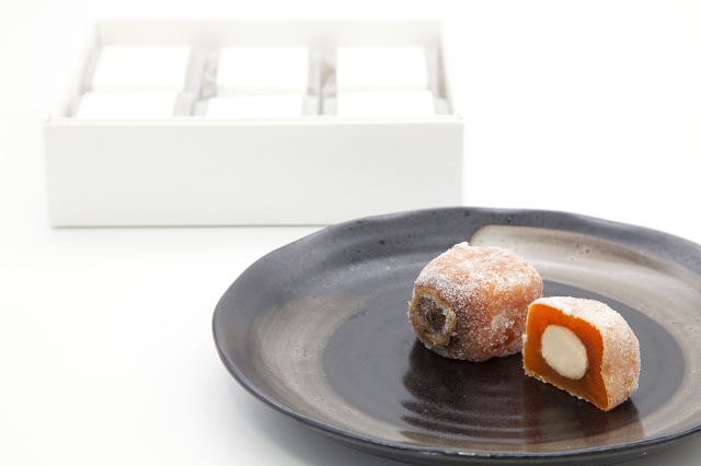 その干し柿を、まるで和菓子のように仕立てたのが、冬季限定の柿菓子 「柿ころも」 です。